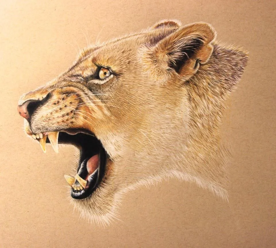 The majority of these illustrations were drawn with Prismacolor pencils on tan or grey-toned paper, while some include a softly blurred colored background created with PanPastels. I’ve always been passionate about animals, and drawing them is one of my greatest joys.